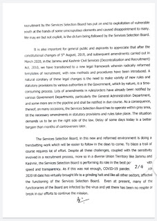The Services Selection Board has set highest standards of transparent examinations probity in Recruitment in recent times, by conducting largest ever exam in Kashmir in a hassle-free and successful manner, by setting in the history of Jammu a ress are concerned.